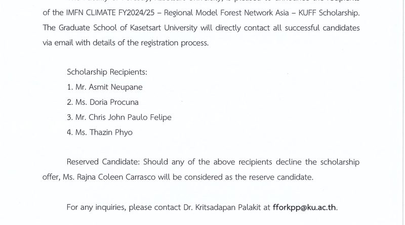 Recipients of the IMFN CLIMATE FY2024/25 – Regional Model Forest Network Asia – KUFF Scholarship November 25, 2024